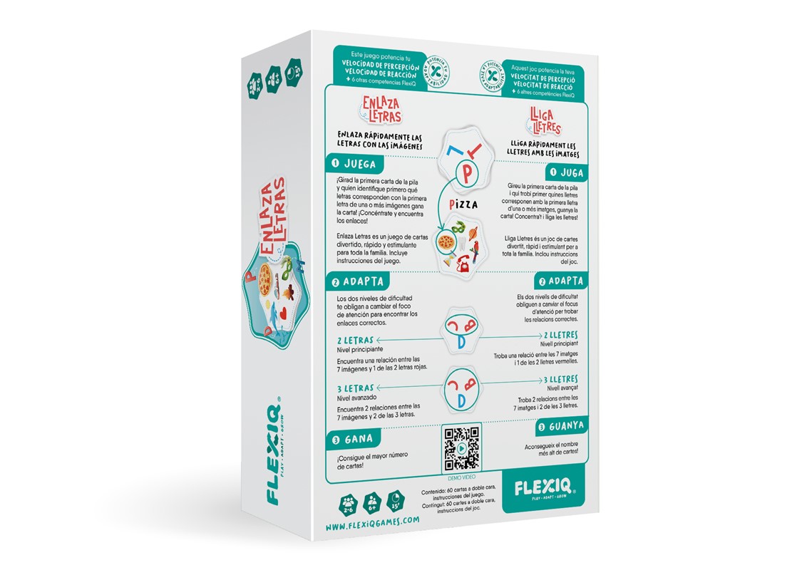 Enlaza Letras es un juego educativo perfecto para aprender jugando desde los 6 años: estimula el lenguaje, mejora la concentración y convierte el aprendizaje en una experiencia divertida para toda la familia. Diversión en familia mientras los peques aprenden jugando.