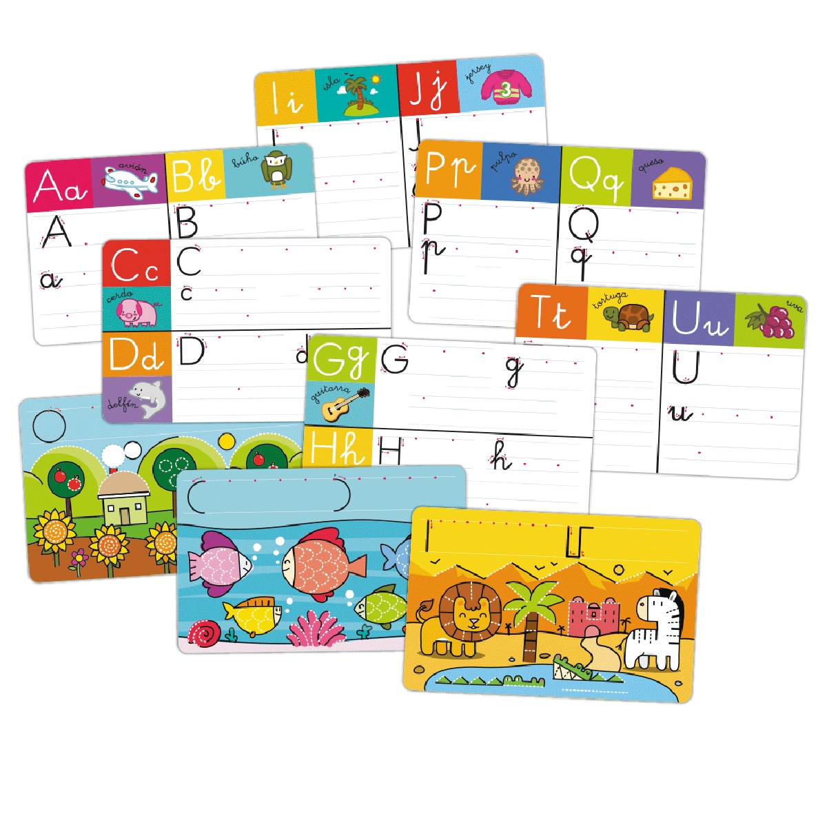 El juego consta de 21 láminas de dificultad progresiva, todas ellas borrables, de modo que el niño puede repasar una y otra vez sin necesidad de consumir hojas adicionales.
