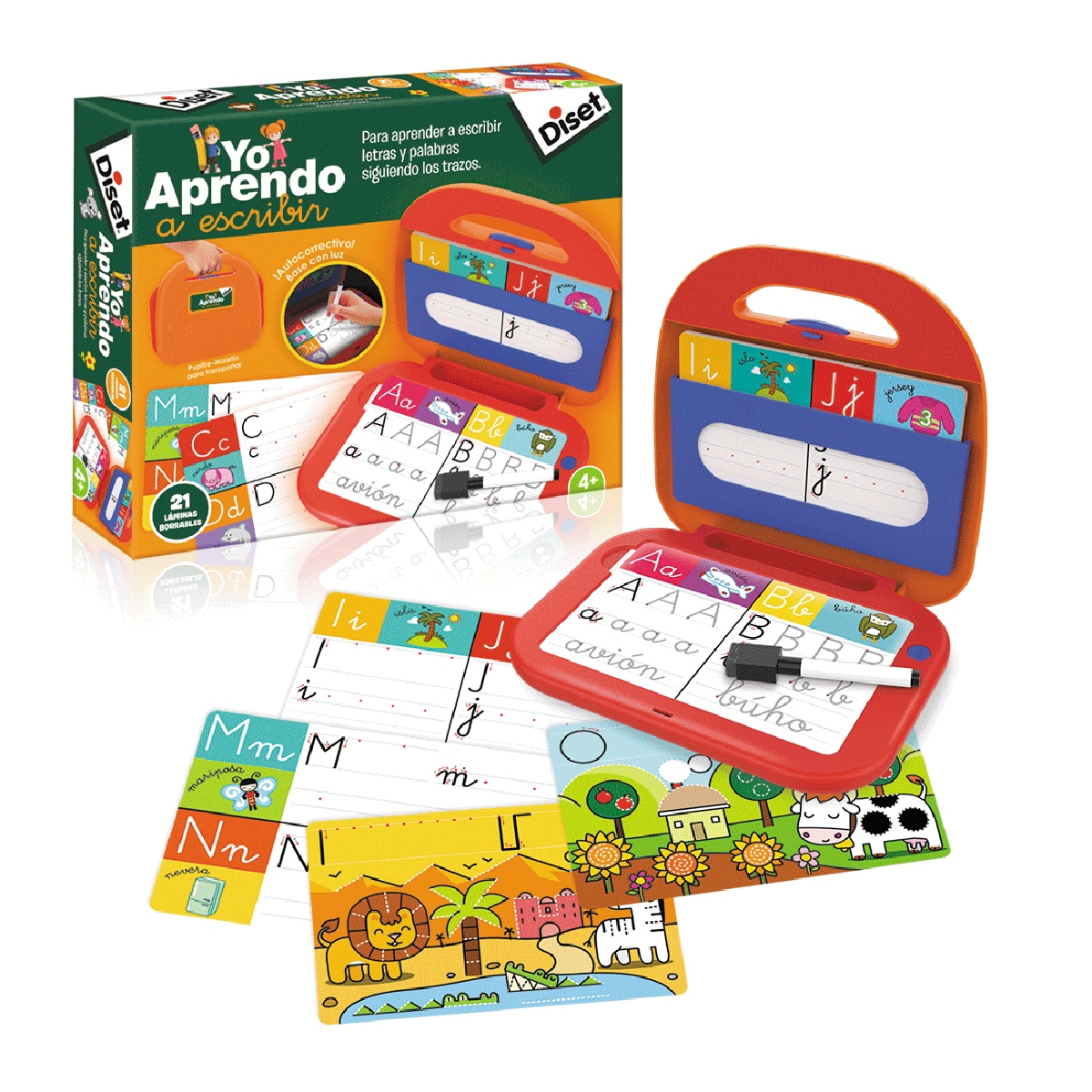 Yo Aprendo a Escribir de Diset es un maletín educativo luminoso diseñado para que los niños practiquen sus primeros trazos y aprendan a escribir letras mayúsculas, minúsculas e incluso algunas palabras de forma divertida e interactiva.