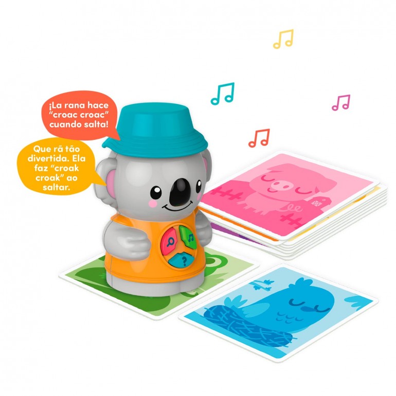 Modo Diversión: Coco dice los nombres de los animales y sus sonidos, enseñando colores y formas.